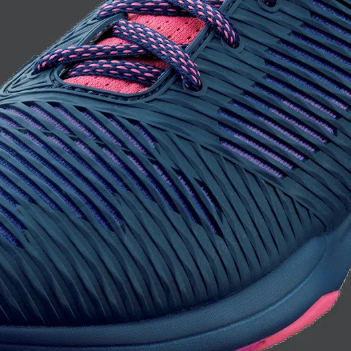 – Thiết kế ngón chân giúp loại bỏ cảm giác áp lực lên ngón chân cái bằng cách tăng khả năng hỗ trợ phẫn giữa và gót chân. Sự trượt của bàn chân bên trong giày được ngăn chặn, giúp thực hiện động tác chân nhanh chóng mà không bị mất sức.